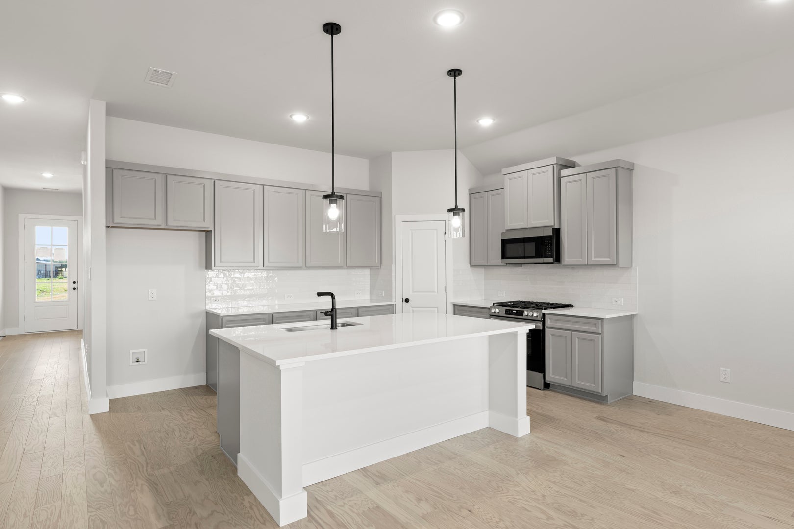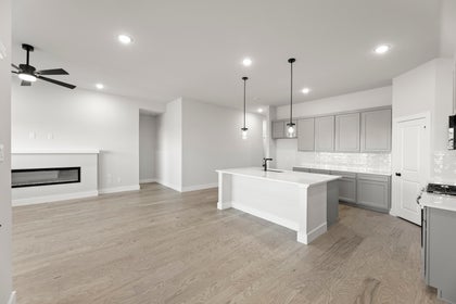 Step inside this thoughtfully designed, open-concept single-level home where style meets affordability. Soaring 10-foot ceilings create a bright, airy atmosphere that flows seamlessly throughout the spacious living areas. At the heart of the home, a large kitchen island anchors the gourmet-inspired kitchen, perfect for entertaining, meal prep, or casual family gatherings. The living room features an elegant fireplace, adding warmth and sophistication to the space. Generously sized secondary bedrooms provide comfort and versatility—ideal for family, guests, or a home office. With its modern design, open layout, and remarkable value, this home offers the perfect blend of luxury and practicality.